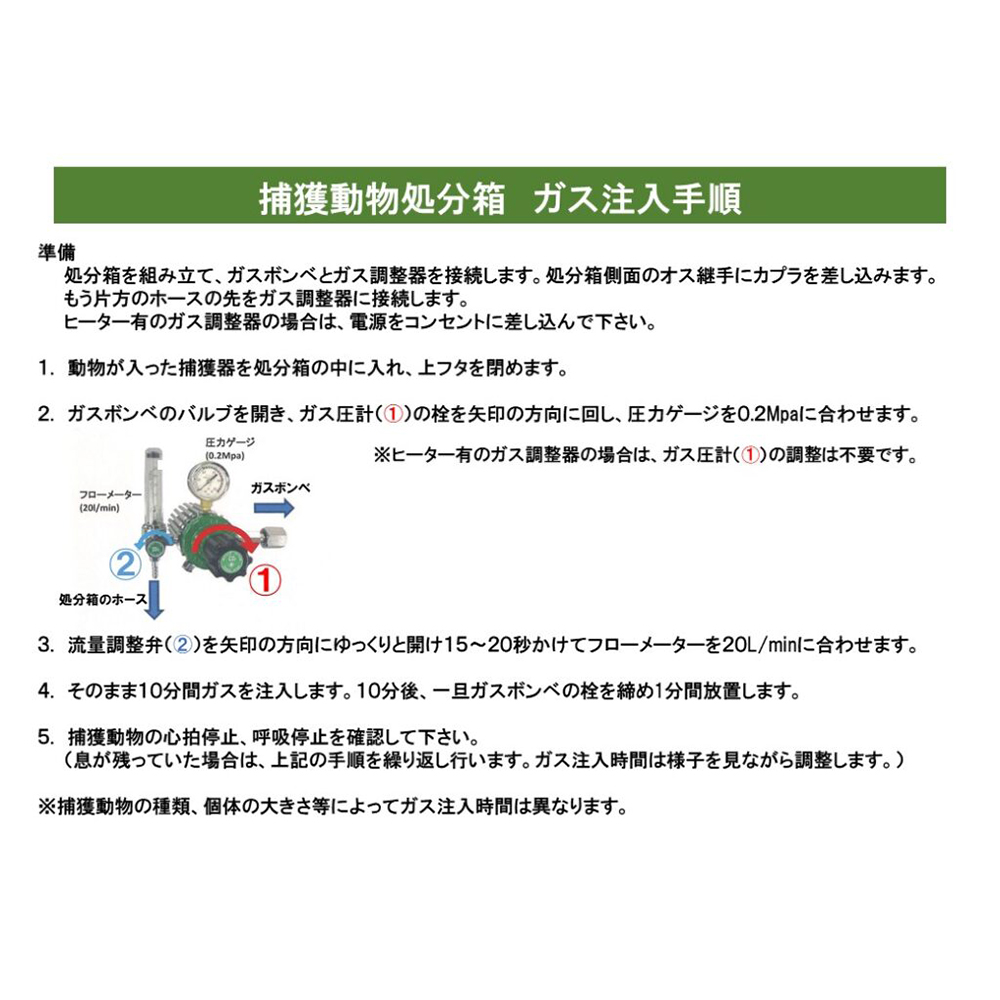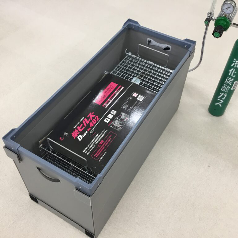 処分方法として「安楽死」(苦痛を伴わない死)と定められています。二酸化炭素により、空気濃度を少しずつ変化させて、眠るように処分することが出来ます。
